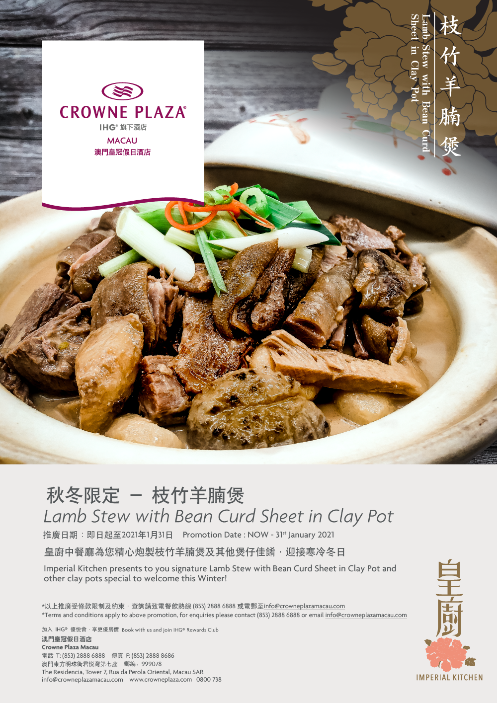 陣陣寒意來襲,正是與家人朋輩圍爐品煲的好時節,皇廚中餐廳為您準備了熱燙香濃的羊腩煲,一起發掘不一樣的冬日美味。