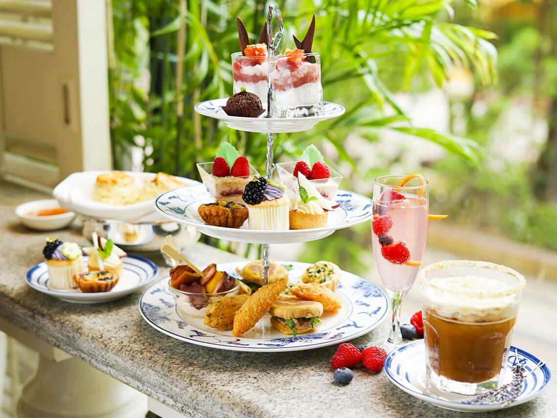 春日庭園下午茶,澳門幣298元兩位。配葡式薰衣草冰萃咖啡或茶。加澳門幣25元升級獨享野莓汽酒特飲。