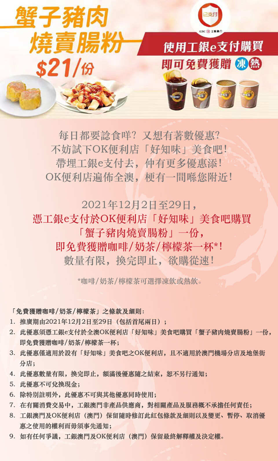 購買「蟹子豬肉燒賣腸粉」即免費獲贈調製飲品