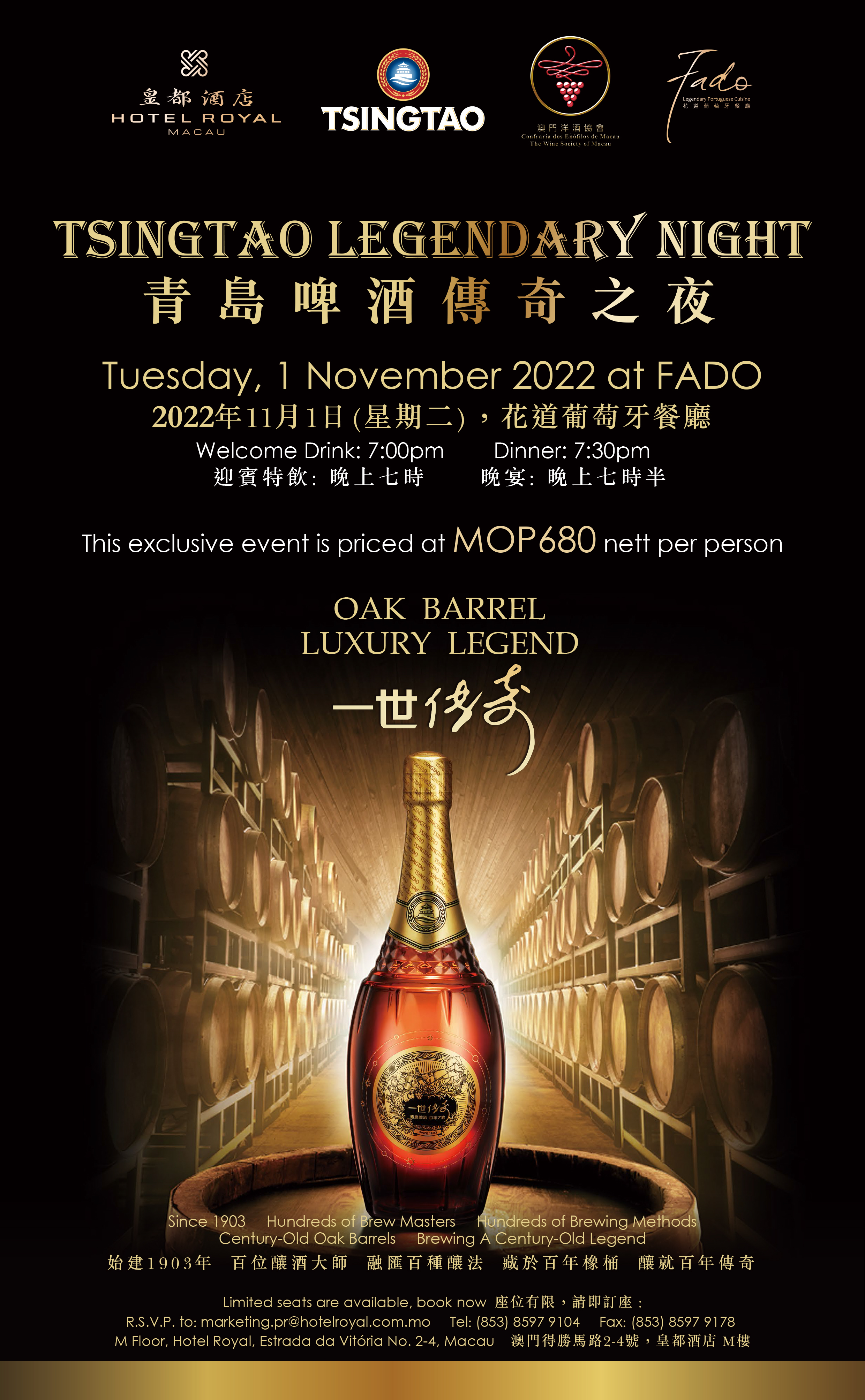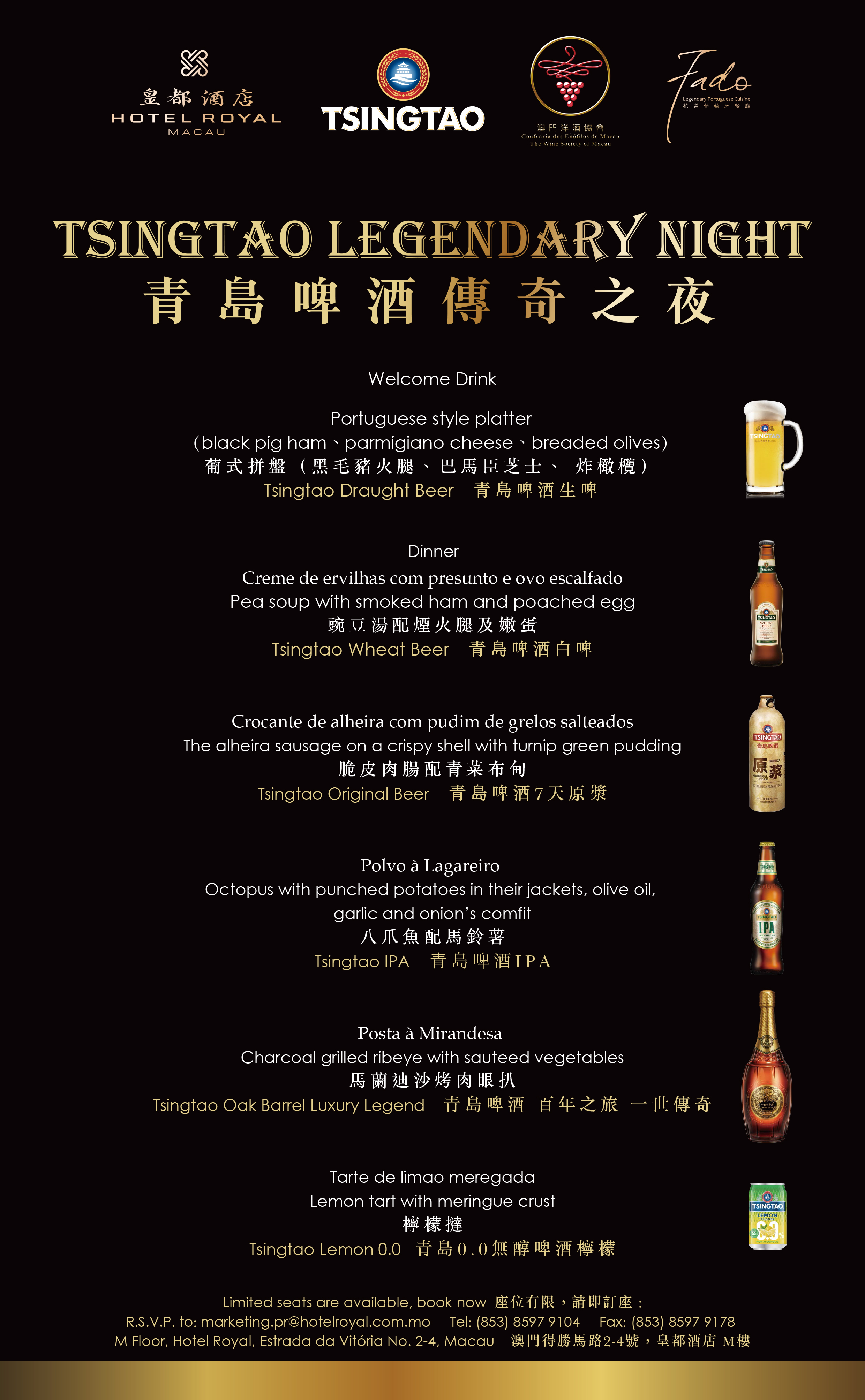 皇都酒店與青島啤酒澳門、澳門洋酒協會在FADO為您呈獻耳目一新的餐飲體驗!
