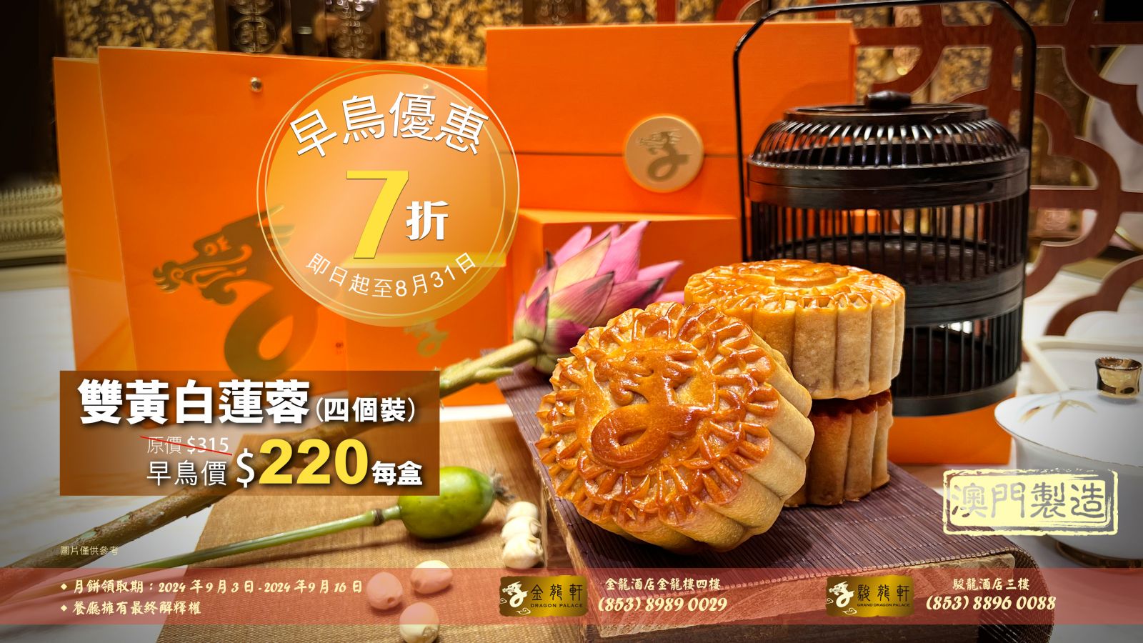 金龍軒匠心打造雙黃白蓮蓉月餅,品嚐到純正傳統手工製作之外,令你同時感受到濃厚的情懷味道,享受精緻成品。