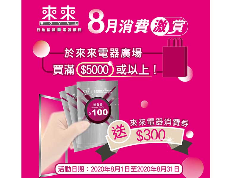 買滿$5000或以上 送消費券$300