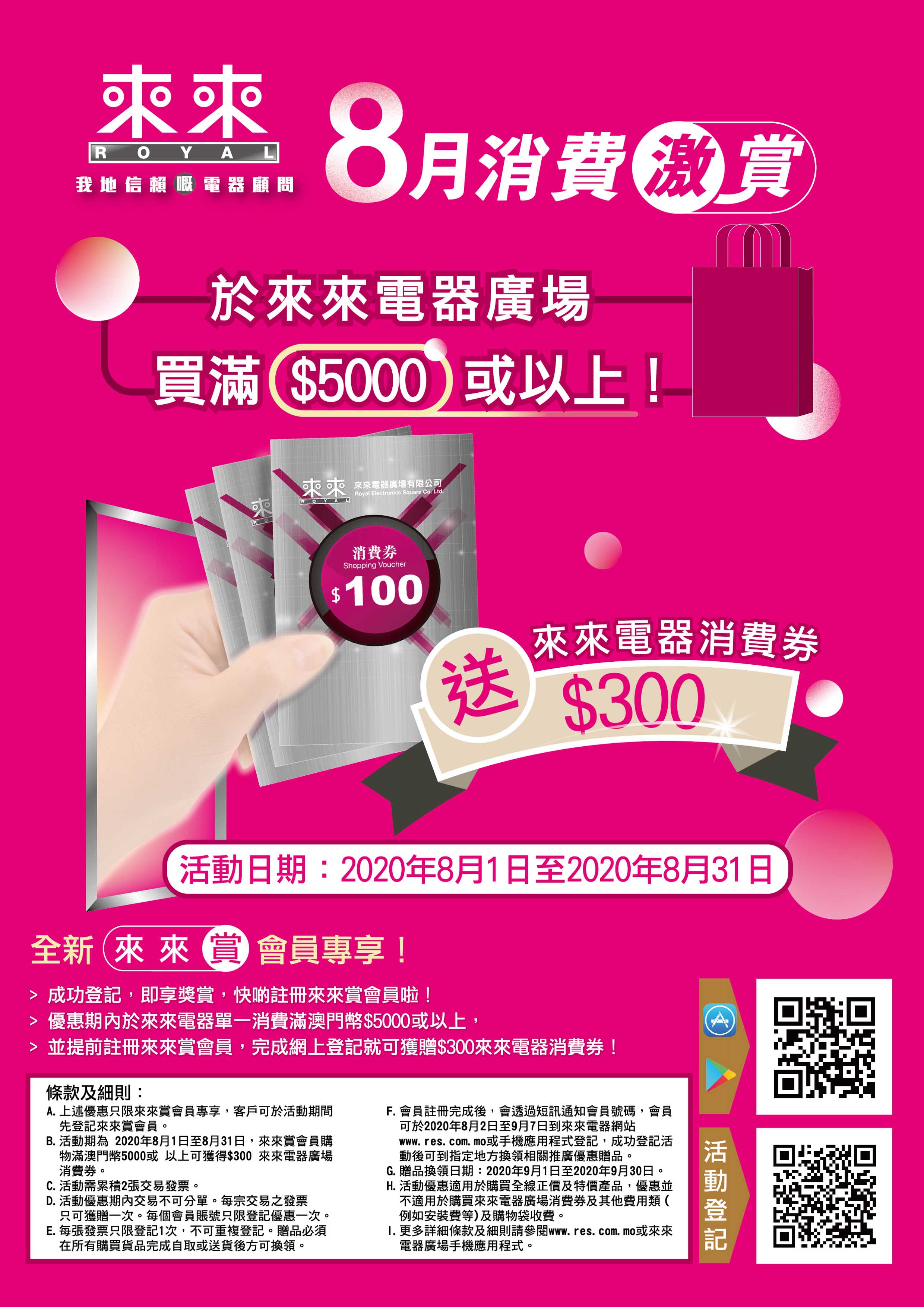 買滿$5000或以上 送消費券$300