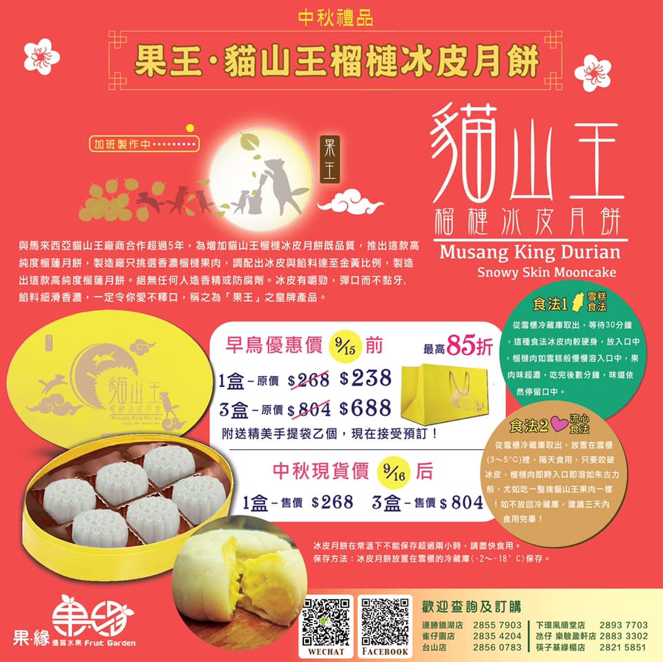 果王貓山王榴槤冰皮月餅及果緣中秋果籃