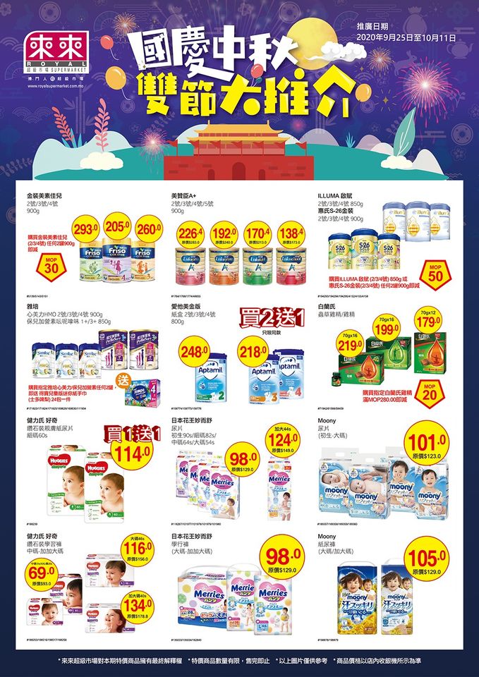國慶中秋雙節大推介 指定尿片買一送一