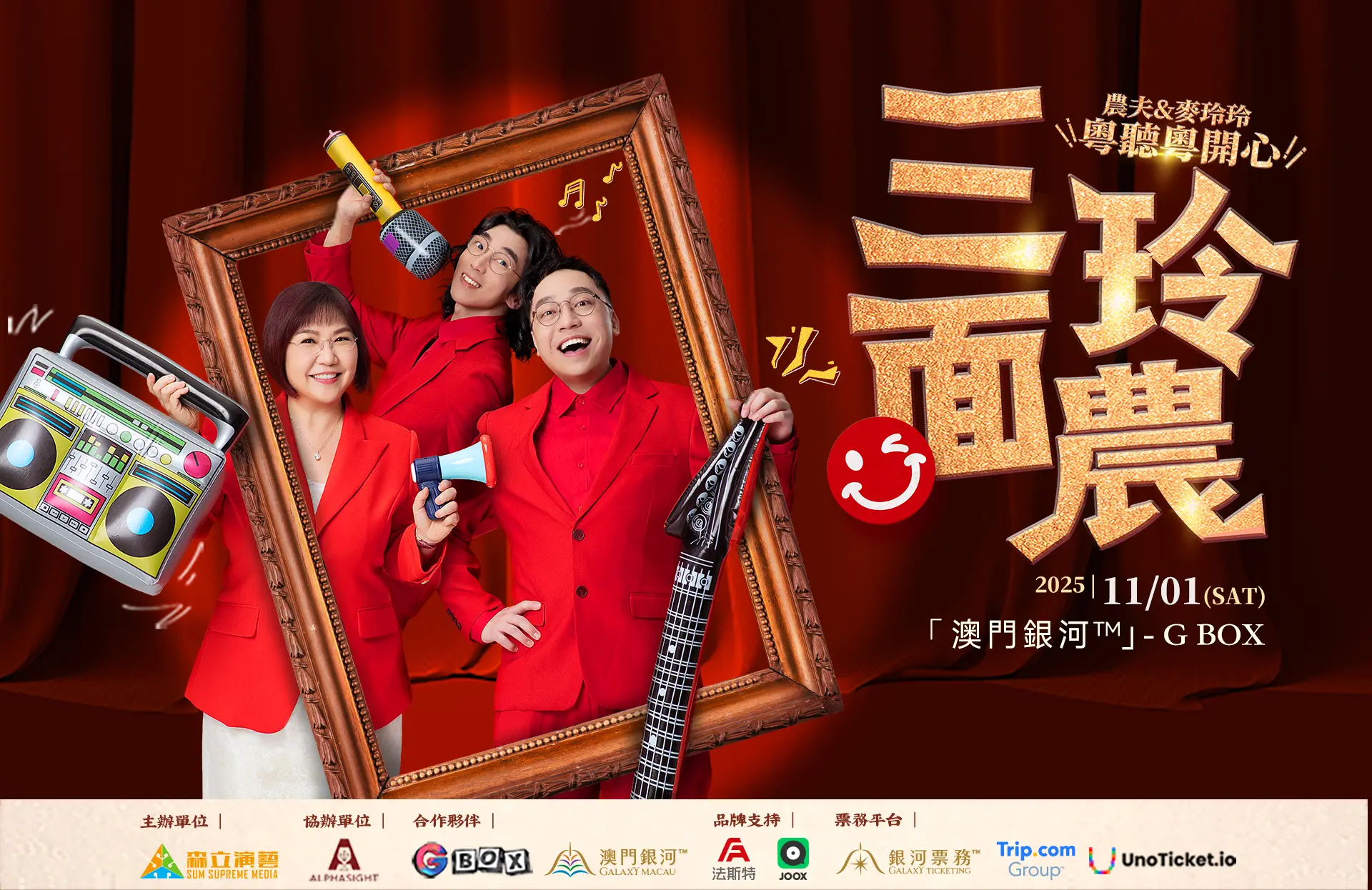 20年神仙聯動再續驚喜!當「嘻哈活寶」農夫FAMA 遇上「玄学天后」麥玲玲,這對創作出《风生水起》的黃金組合,終於要帶着「三面玲農·粵唱粵開心」巡迴走進澳門啦!