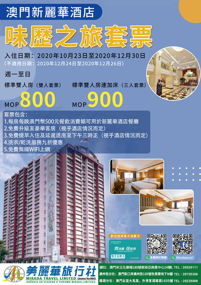 新麗華酒店味歷之旅套票優惠價澳門幣800元起