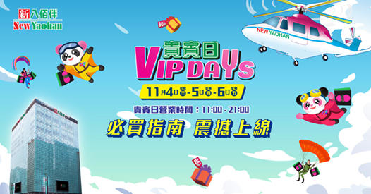 萬眾期待嘅新八佰伴VIP DAYS「必買指南」已經準備好,快啲嚟做定功課、揀定心水好貨!眾多震撼優惠產品以超抵價發售,最齊全好物清單盡在「必買指南」https://promotion.newyaohan.com/。今次升級版VIP DAYS由11月4日做到6日,只限三日,盡情購物!