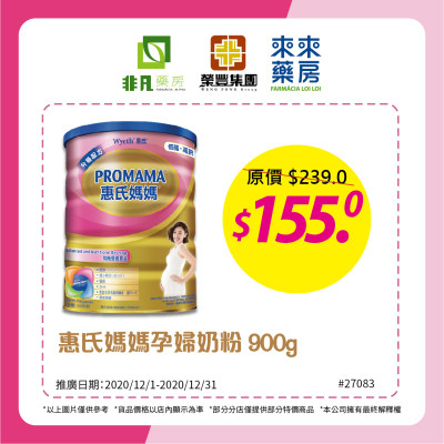 惠氏媽媽奶粉900g 原價$239.0 優惠價$155.0