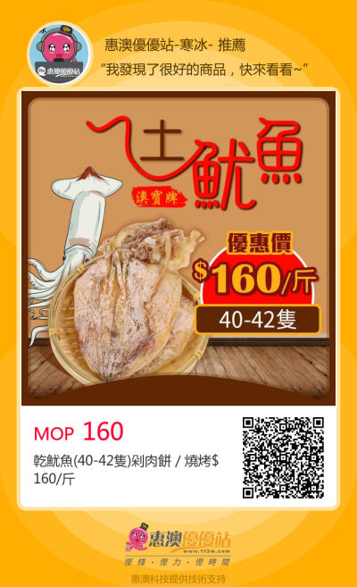 乾魷魚(40-42隻)剁肉餅/燒烤$160/斤