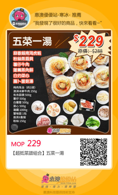 【超抵菜譜組合】五菜一湯 優惠價$229