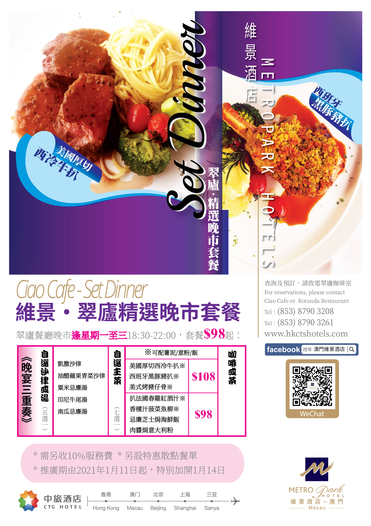 維景翠廬餐廳,逢星期一至三晚Dinner三重奏