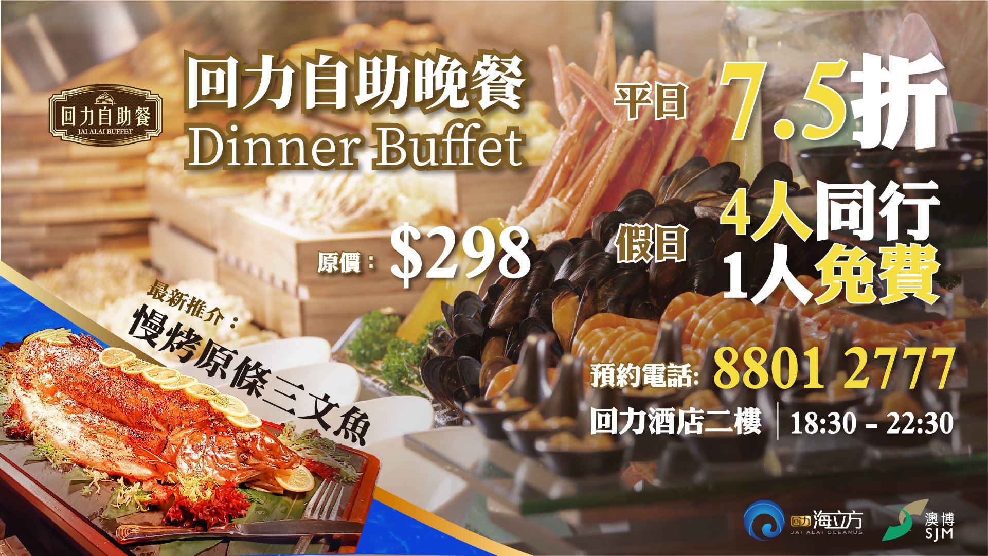 回力自助餐推出逢星期一至星期五,晚市可享受7.5折的優惠活動