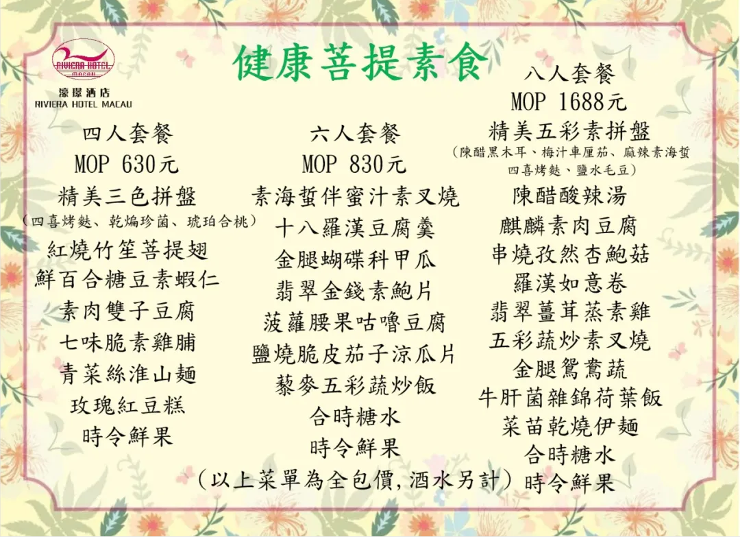 健康菩提素食套餐優惠價$630起