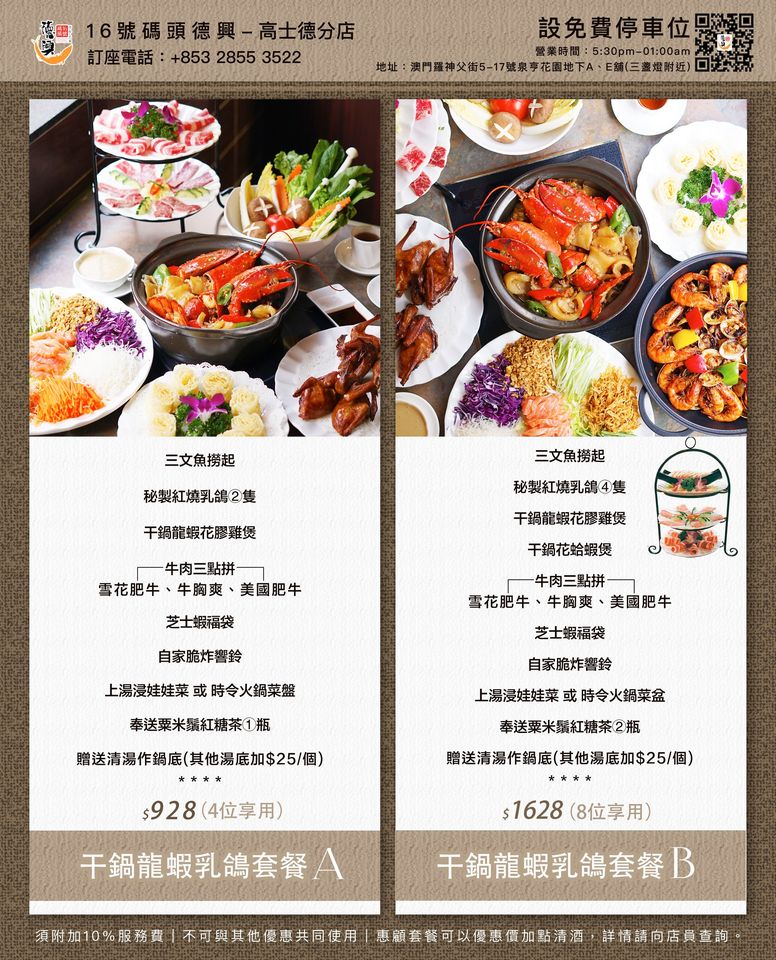 套餐有龍蝦花膠雞煲或花甲蝦煲,簡直鮮到眉毛掉,吃完干鍋後,再以倒入清湯,繼續烹煮火鍋食材如牛肉或丸滑,與鍋底的醬汁融合,豐富的口感,超滿足❗復活節假期聚餐最適合。