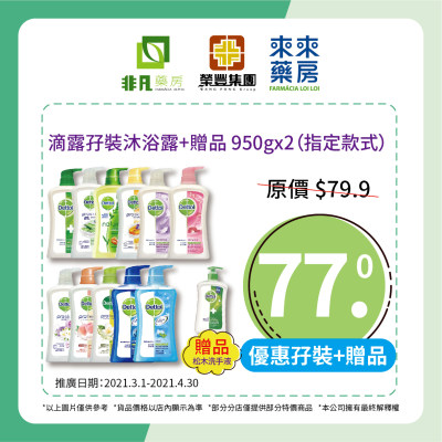 滴露孖裝沐浴露+贈品 950gx2 (指定款式)
