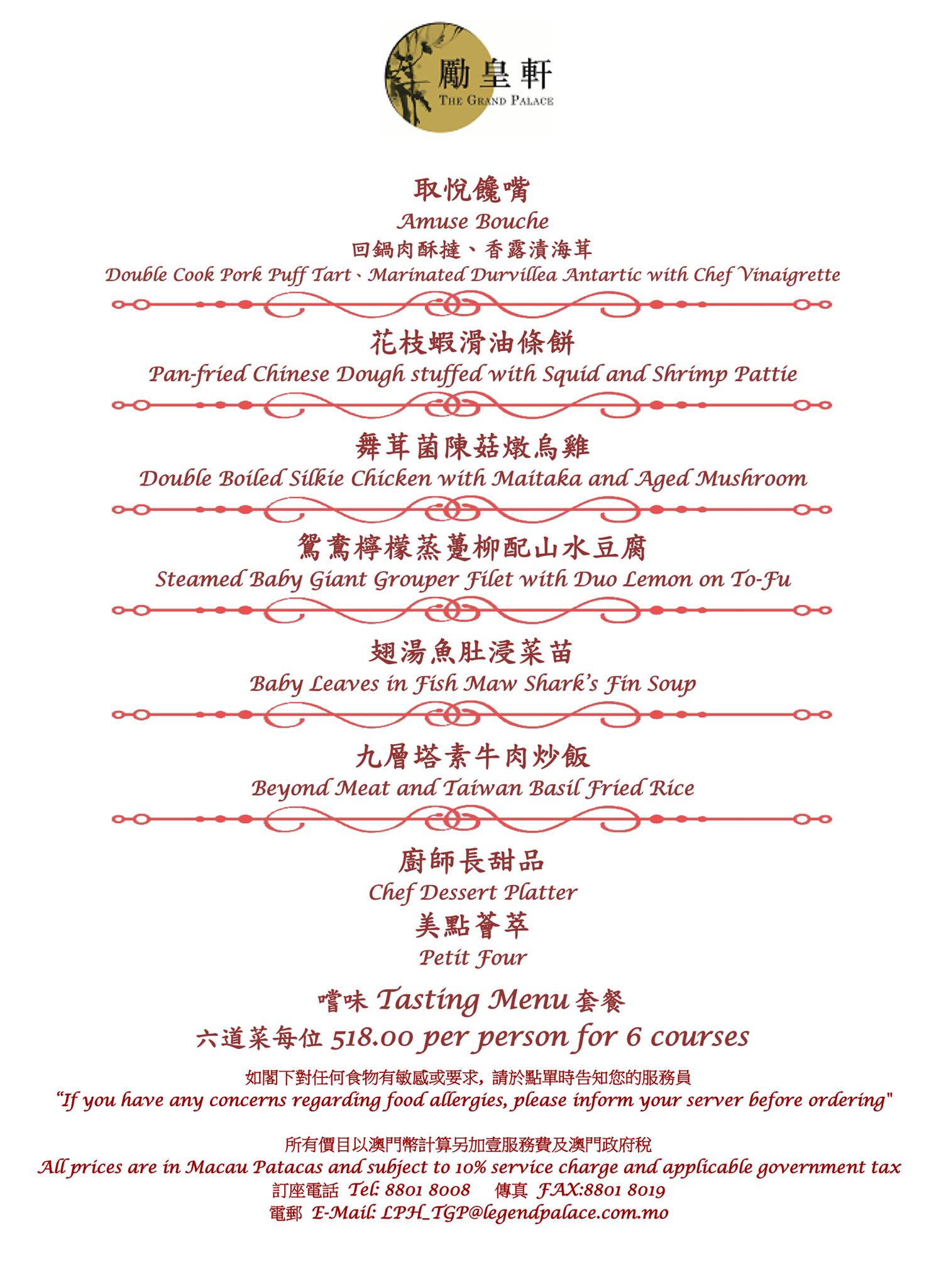 推廣價格:「春分嚐味套餐」6道菜/每位澳門幣$518