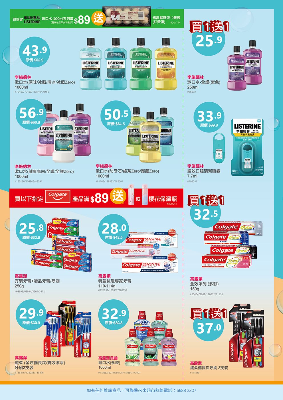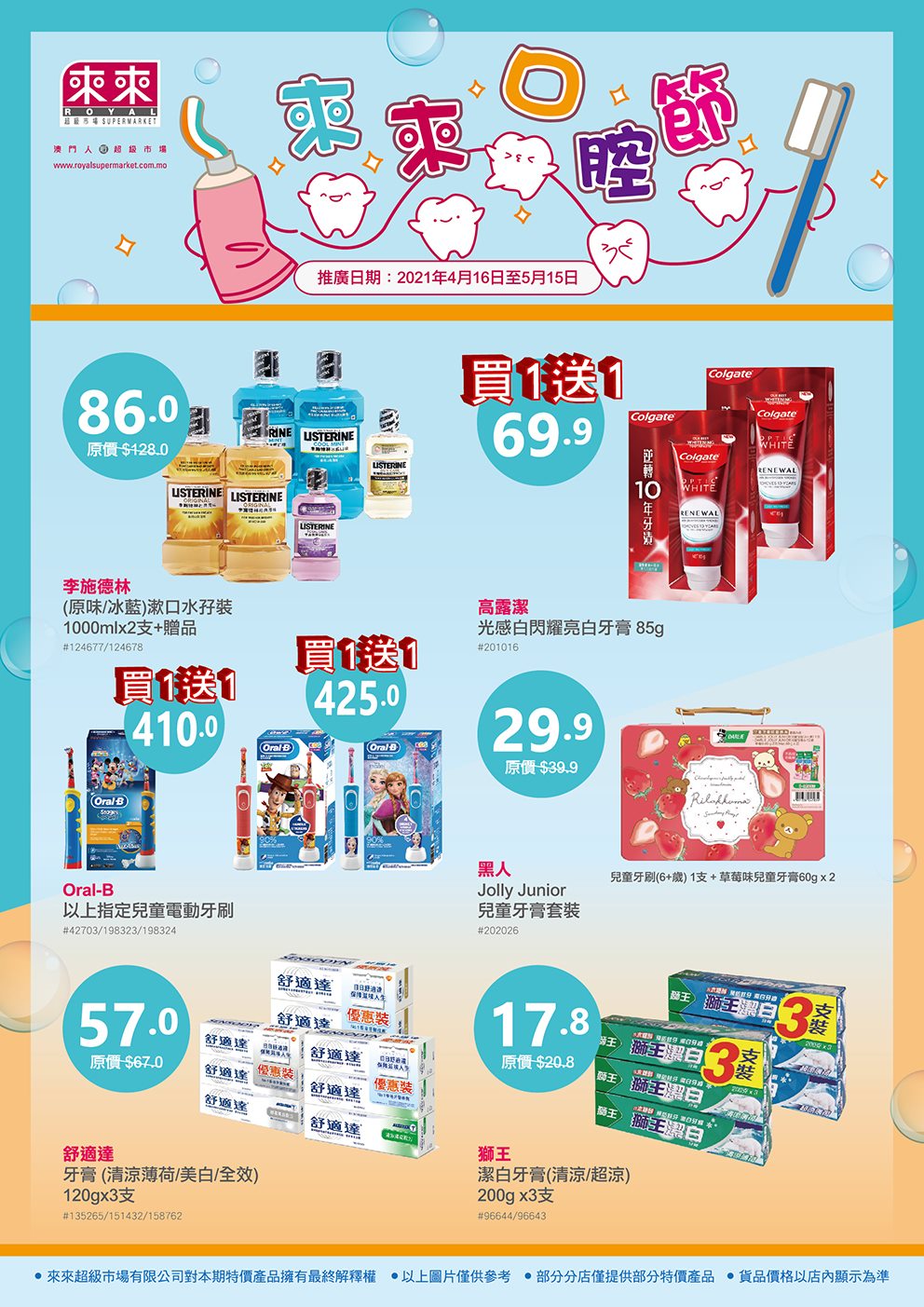 依家購買指定口腔護理產品仲有贈品送添,部分產品更有買一送一優惠,推廣日期由4月16日開始 至 5月15日結束。特價貨品數量有限,快D攞返張推廣單張,睇睇邊款啱心水啦!