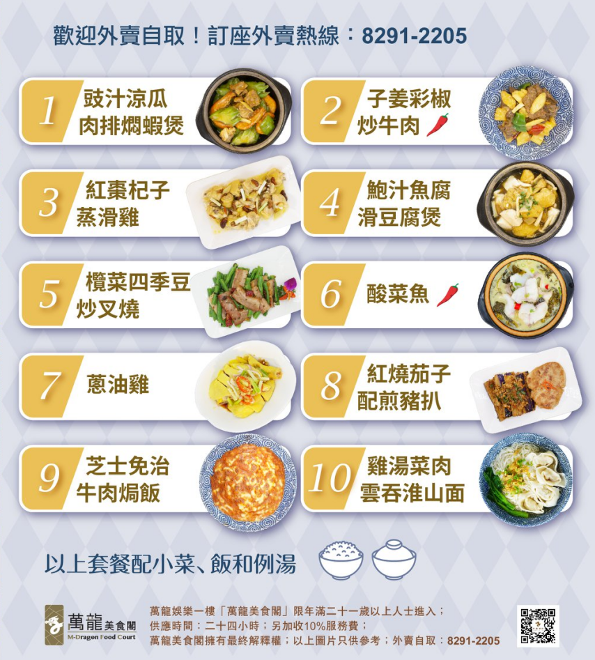 以上套餐包括小菜、飯和湯