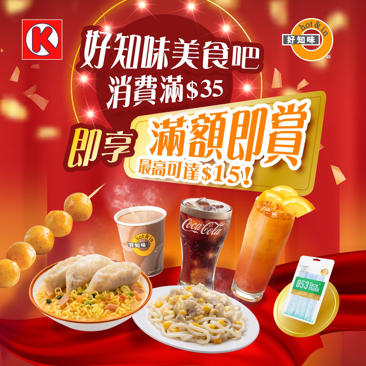 只要在OK便利店好知味美食吧消費滿$35,即獲現金或禮品獎賞,最高即減$15添!