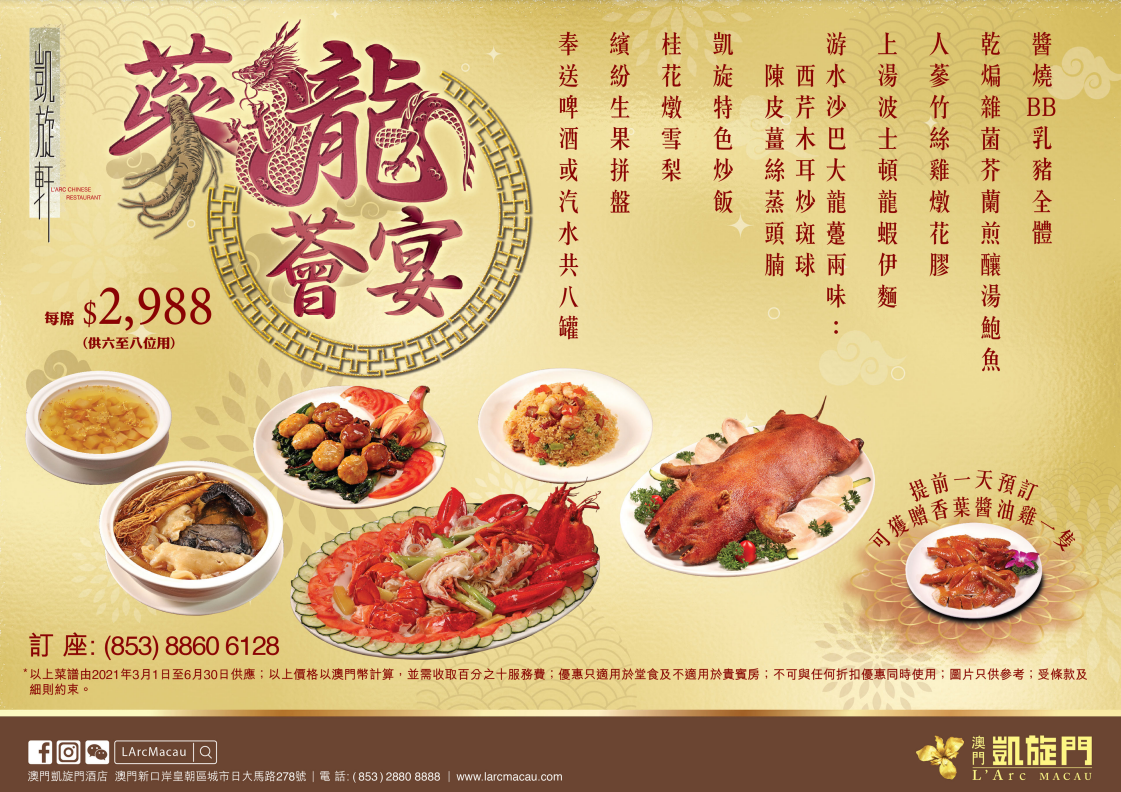 地址 : 澳門城市日大馬路278號澳門凱旋門酒店4樓