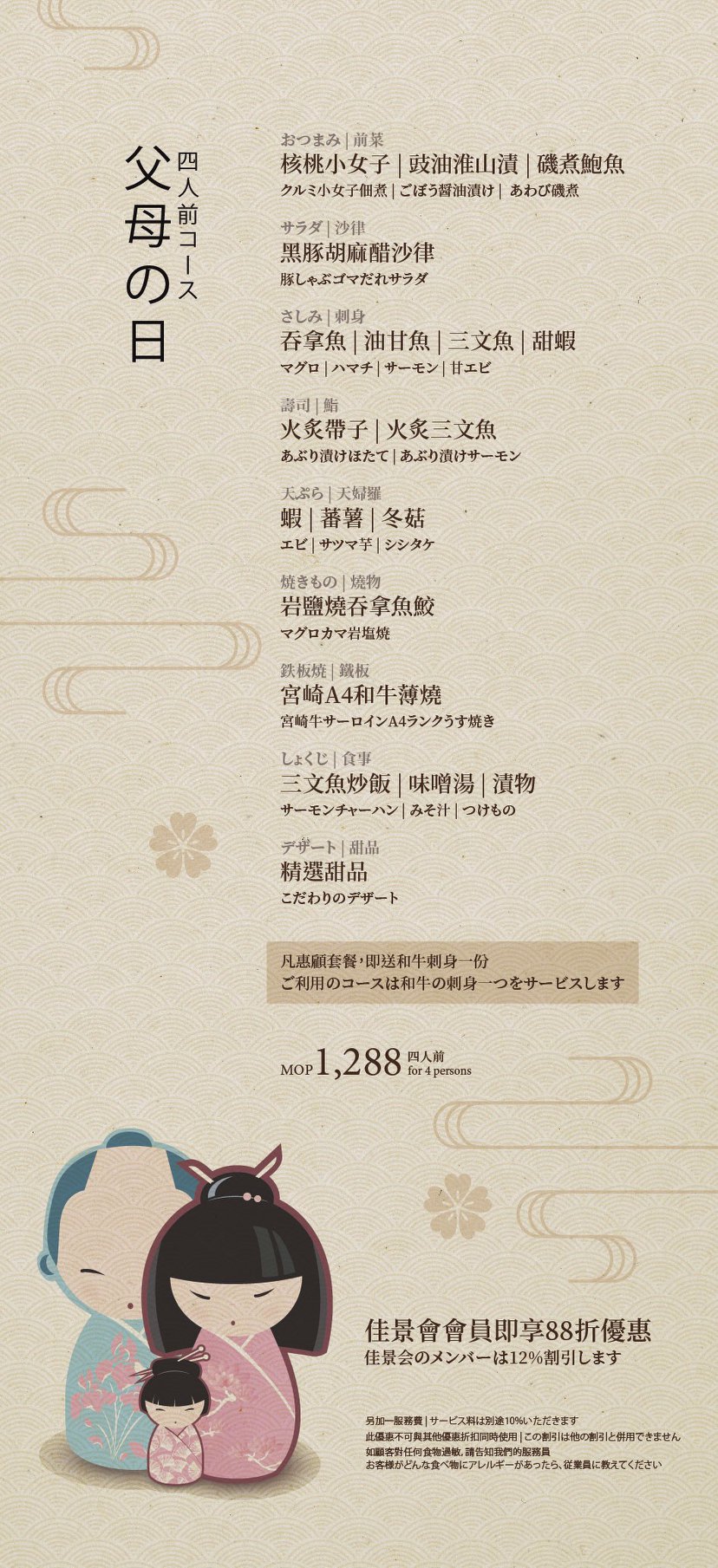 喺澳門一樣可以同爸爸過個和風父親節,江戶日本料理推出四人前套餐。