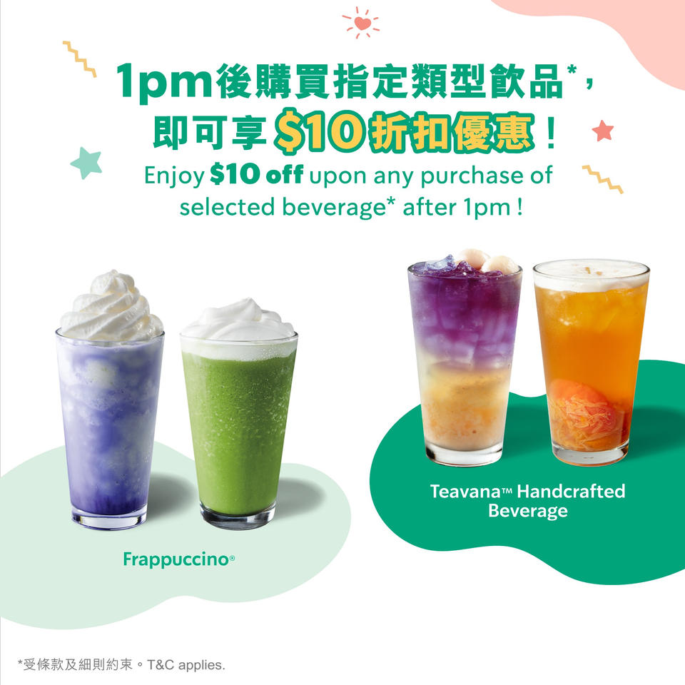 - 優惠不適用於Mobile Order & Pay、星星送及星巴克飲品eGift