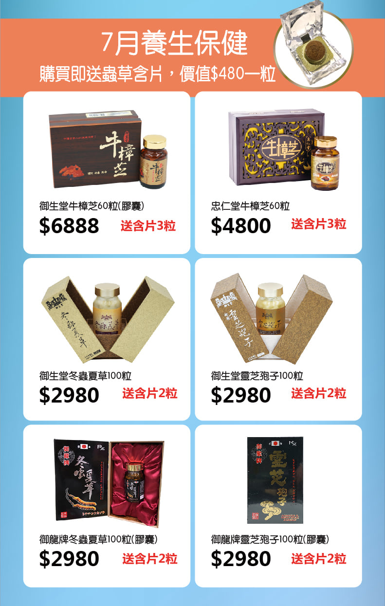七月養生保健:牛樟芝、蟲草含片、靈芝孢子、魚油、兒童保健品...