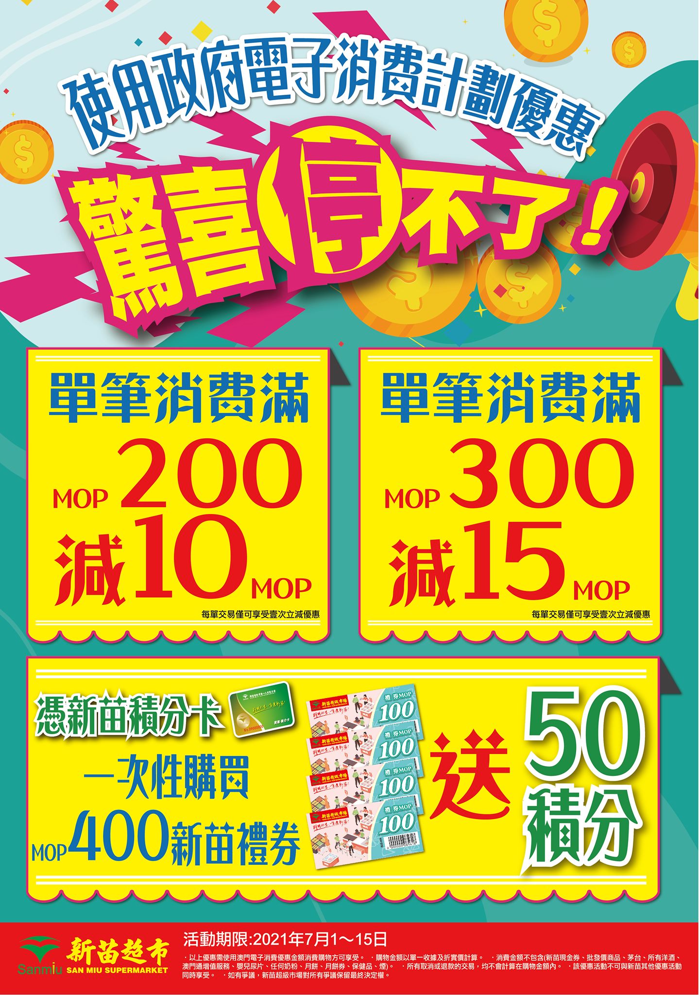 2.滿MOP300, 立減MOP15!