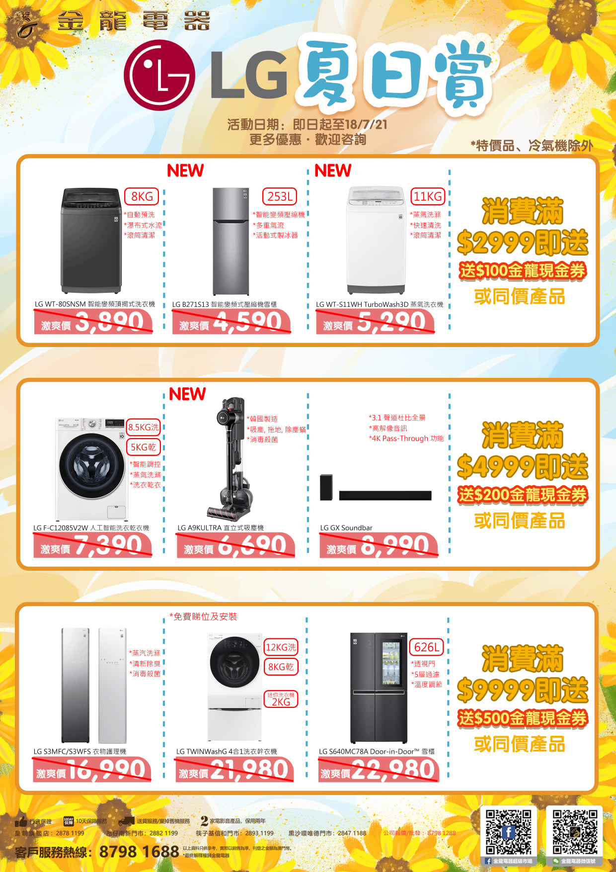 即買即送 ,多買多送,買LG 任何產品即送指定現金券(或與現金券等價產品)