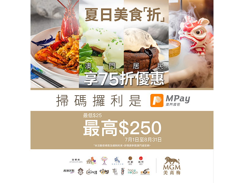 夏日炎炎,最需要消暑!MGM嘅夏日美食「折」,既能消暑又可以犒賞您嘅胃,於2021年7月1日至8月31日,凡全數以 #澳門通卡 或 #MPay 喺 澳門美高梅及美獅美高梅指定餐飲消費,澳門居民可享受低至 【75折優惠】(25%off)
