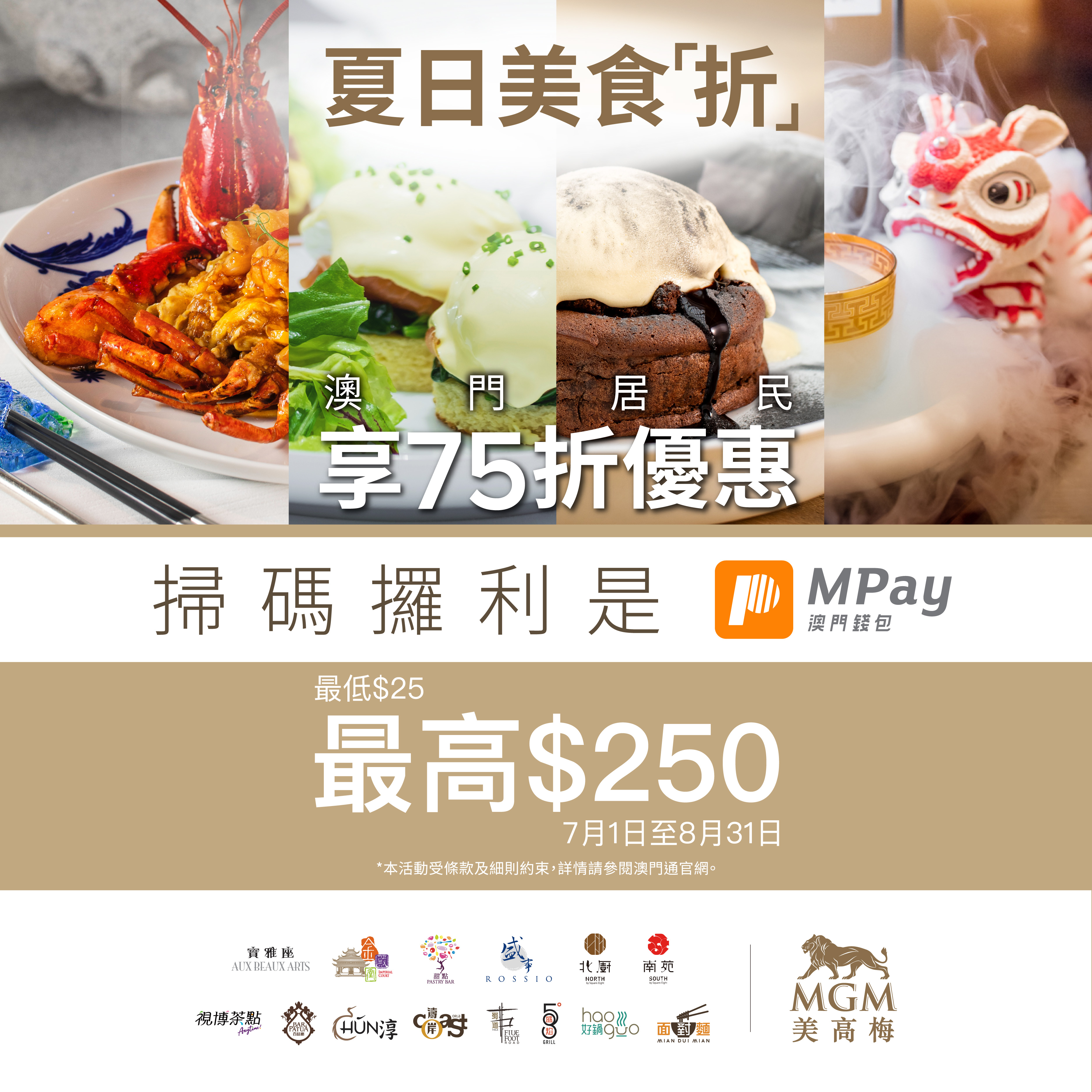 2. 優惠適用於澳門美高梅及美獅美高梅指定餐廳。