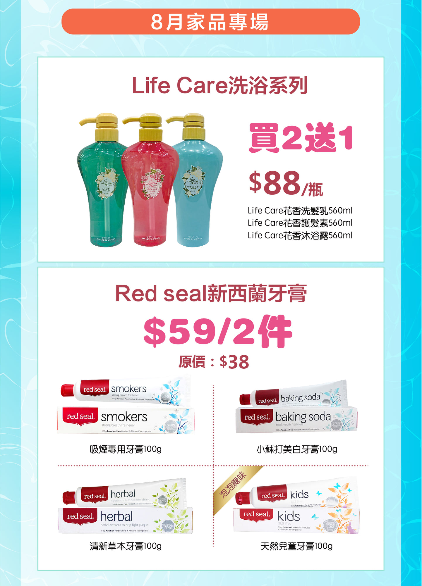 洗浴:日本life care洗浴用品買二送一、新西蘭牙膏$59/2支