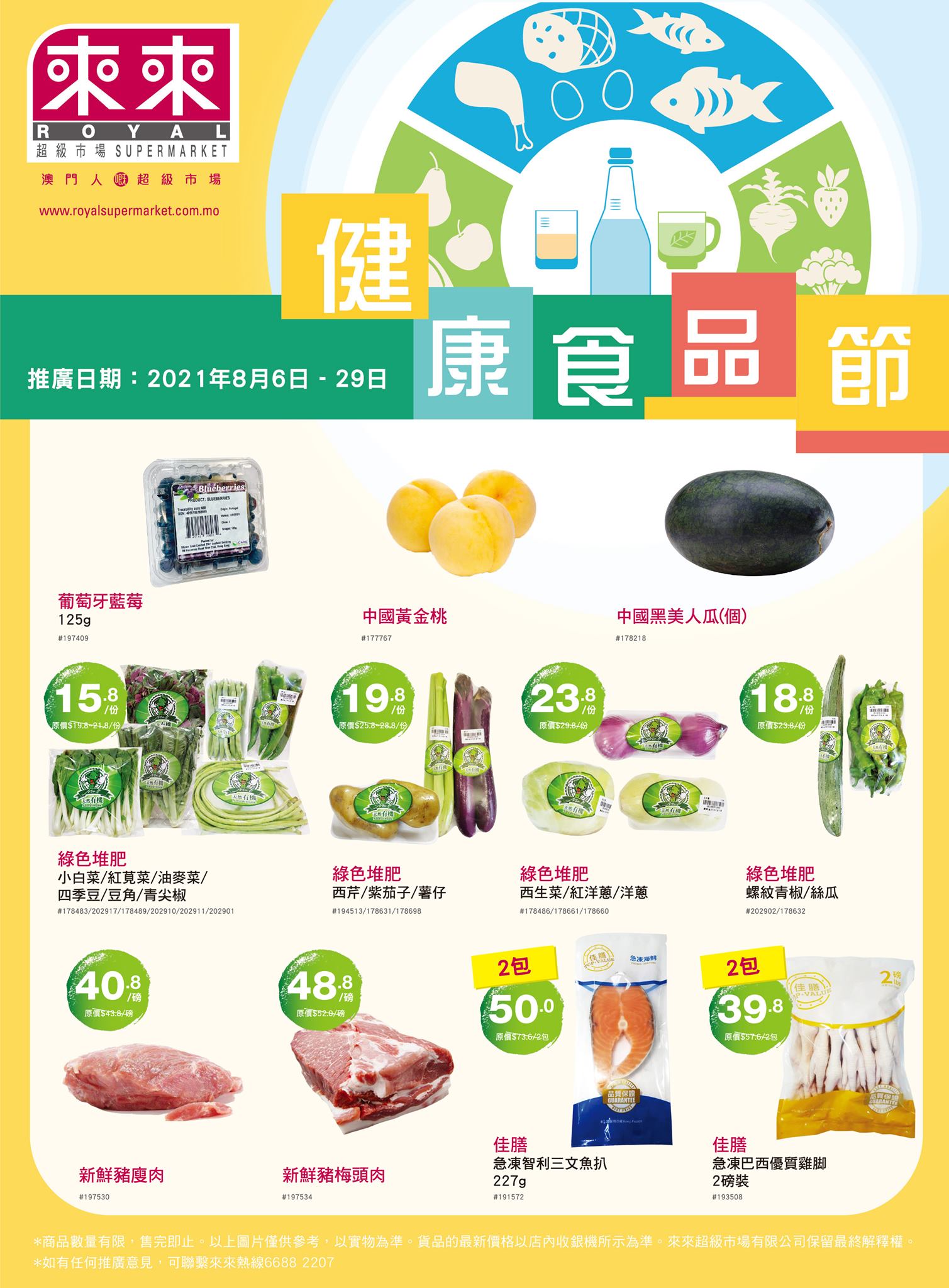 天氣又焗又熱,身體就更加需要健康既飲食啦 ! 今個夏天來來超市推出『健康食品節』約定您地齊齊健康過夏日! 精選當季新鮮蔬果及肉類等產品推介比您地,仲有多款精挑細選既天然健康食品以超筍價格益街坊 ! 就係咁抵咁健康~快D嚟來來超市選購啦!