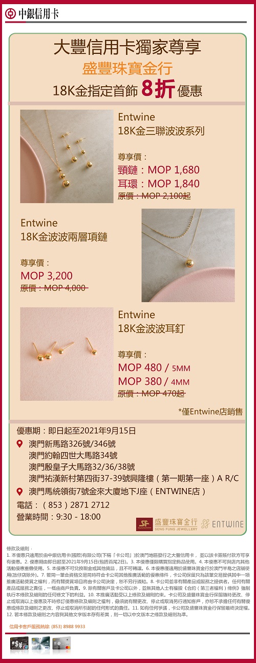 18K金指定首飾8折優惠