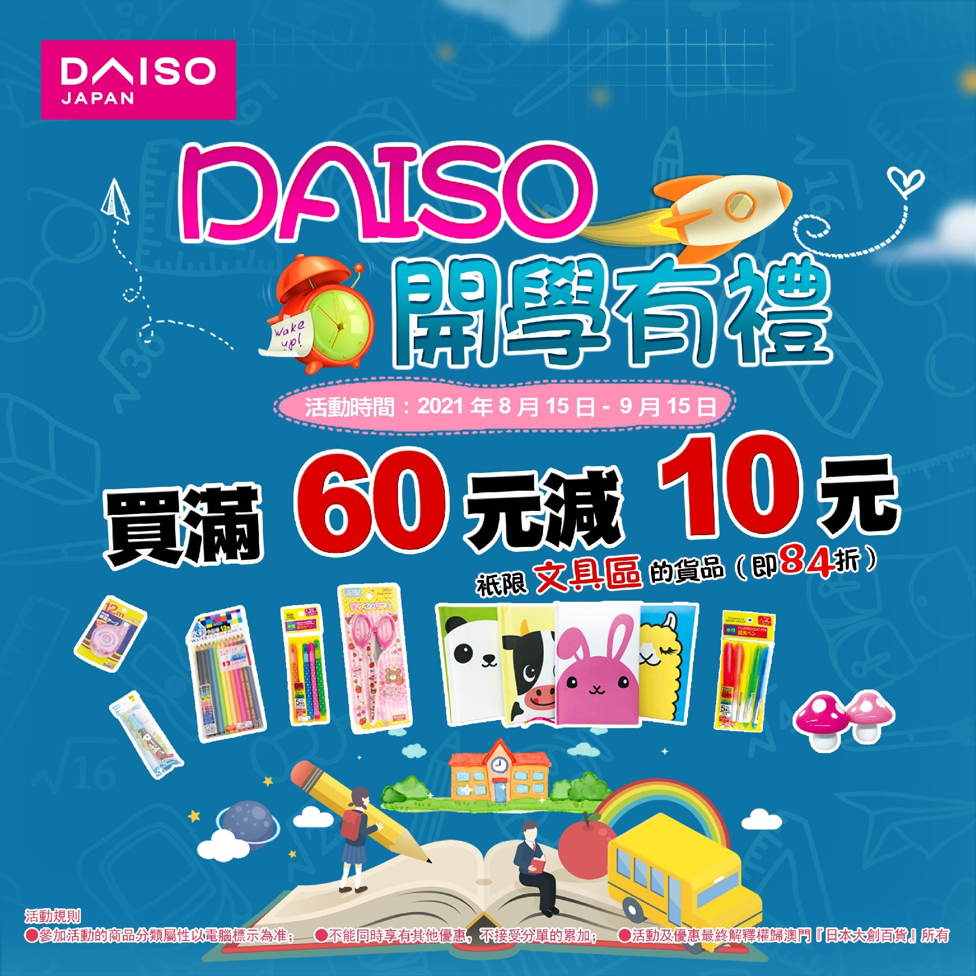 活動細則:參加活動的文具分類以電腦標示為準、不能與其他優惠同時享用、活動優惠最終解釋權歸澳門日本大創百貨所有