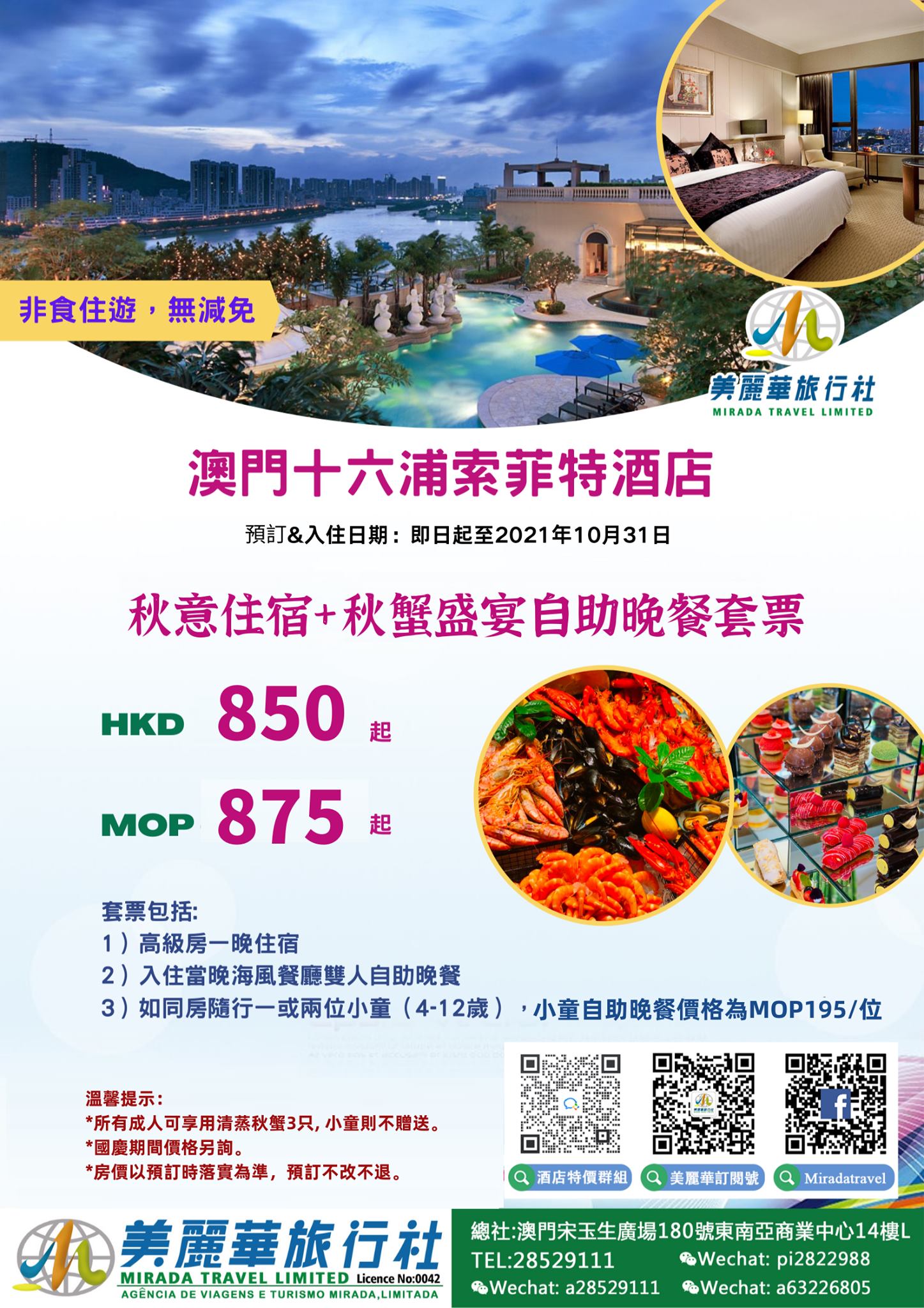 索菲特酒店住宿餐飲套票$875起