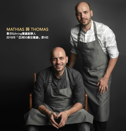 精緻典雅的德國名菜,經典與新派交融的歐式美饌,由來自曼谷米芝蓮餐廳Sühring的孿生名廚Mathias與Thomas Sühring為您細意呈獻。歡迎您透過味蕾感官,細細享受源自兩位主廚家鄉的動人滋味,投入這場扣人心弦的味覺盛宴。