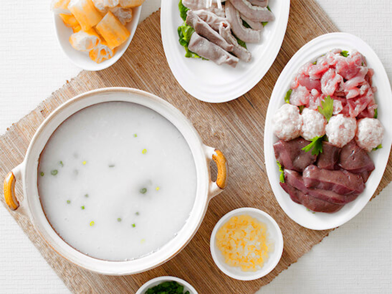細滑香濃的慢熬粥底,品嚐方式千變萬化,更可作為火鍋底!以一鍋乳白濃稠的米漿,滾煮手打豬肉丸、鮮鯇魚腩與新鮮豬雜等食材,鮮甜精華匯聚一鍋,肉質嫩滑爽口,粥底更是滋味無比!