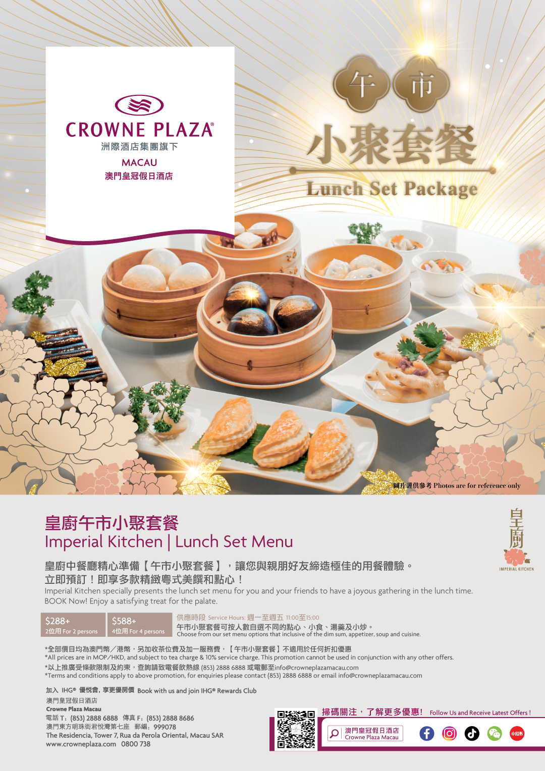 地址 : 祐漢東方明珠街219號澳門皇冠假日酒店2樓