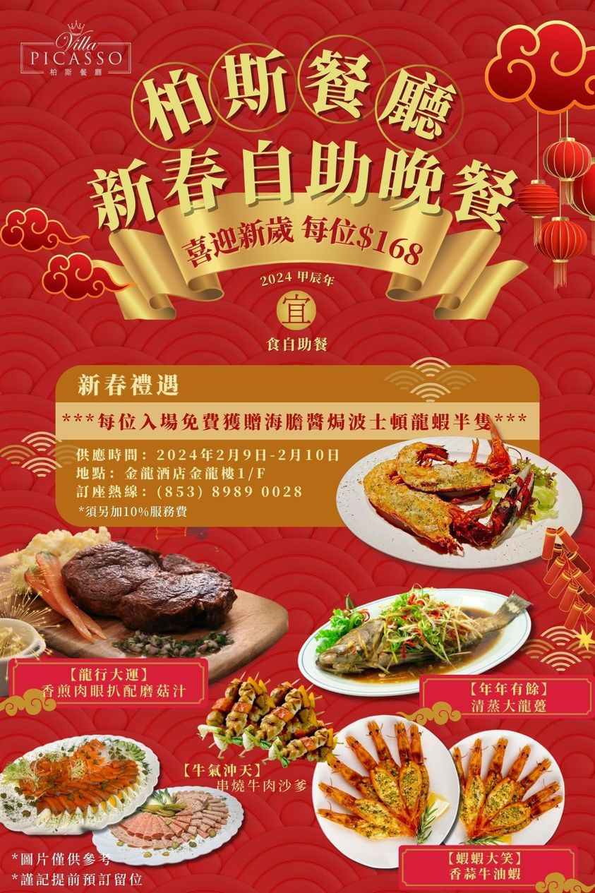 柏斯餐廳 一早做足準備,為您炮製中式團年菜餚 之外,亦可品嚐到西式精彩風味,齊齊品嚐八大款寓意美食,實行一同豐衣足食!豐渡新春!