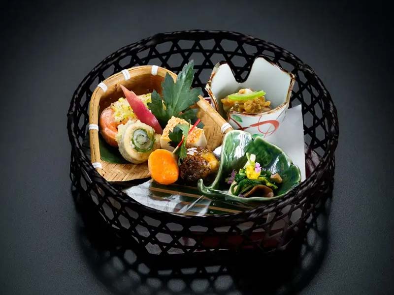 主廚團隊精心打造彩月會席,前菜以當季的茄子製成晶瑩剔透的啫喱,配以北海道海膽與生薑,清新韻味非常開胃。以正值時令的秋天海鰻和香氣撲鼻的松茸炮製水菜火鍋,讓海鰻及松茸的鮮、甜、香味完全釋放,滋味暖心。形態像武士刀的秋刀魚,到了秋季最是肥美。在八寸中呈現的炸秋刀魚紫蘇卷,完美突出其肉厚甘香的特質,一試難忘。在和歌山清澈河川捕獲的香魚經慢煮後,油光勃發,魚卵飽滿可口。創意及傳統並重的豐盛會席,為您細緻演繹東瀛醉人秋色,絕對不能錯過!
