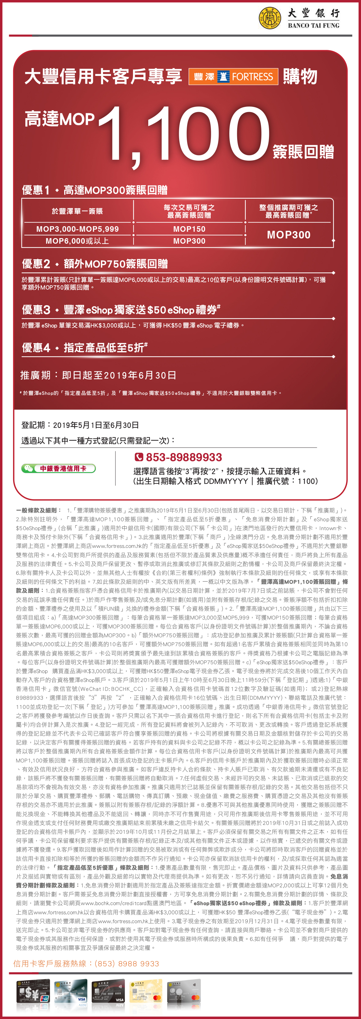 購物專享高達MOP1,100簽賬回贈