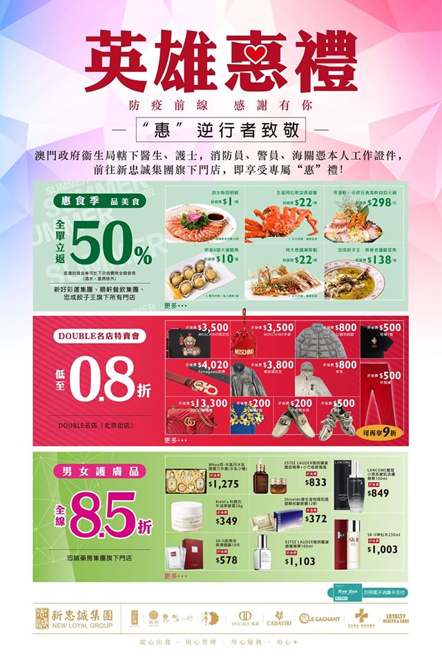 同時新忠誠集團齊助陣,聯合推出特惠活動,為抗疫英雄獻上專屬禮遇~