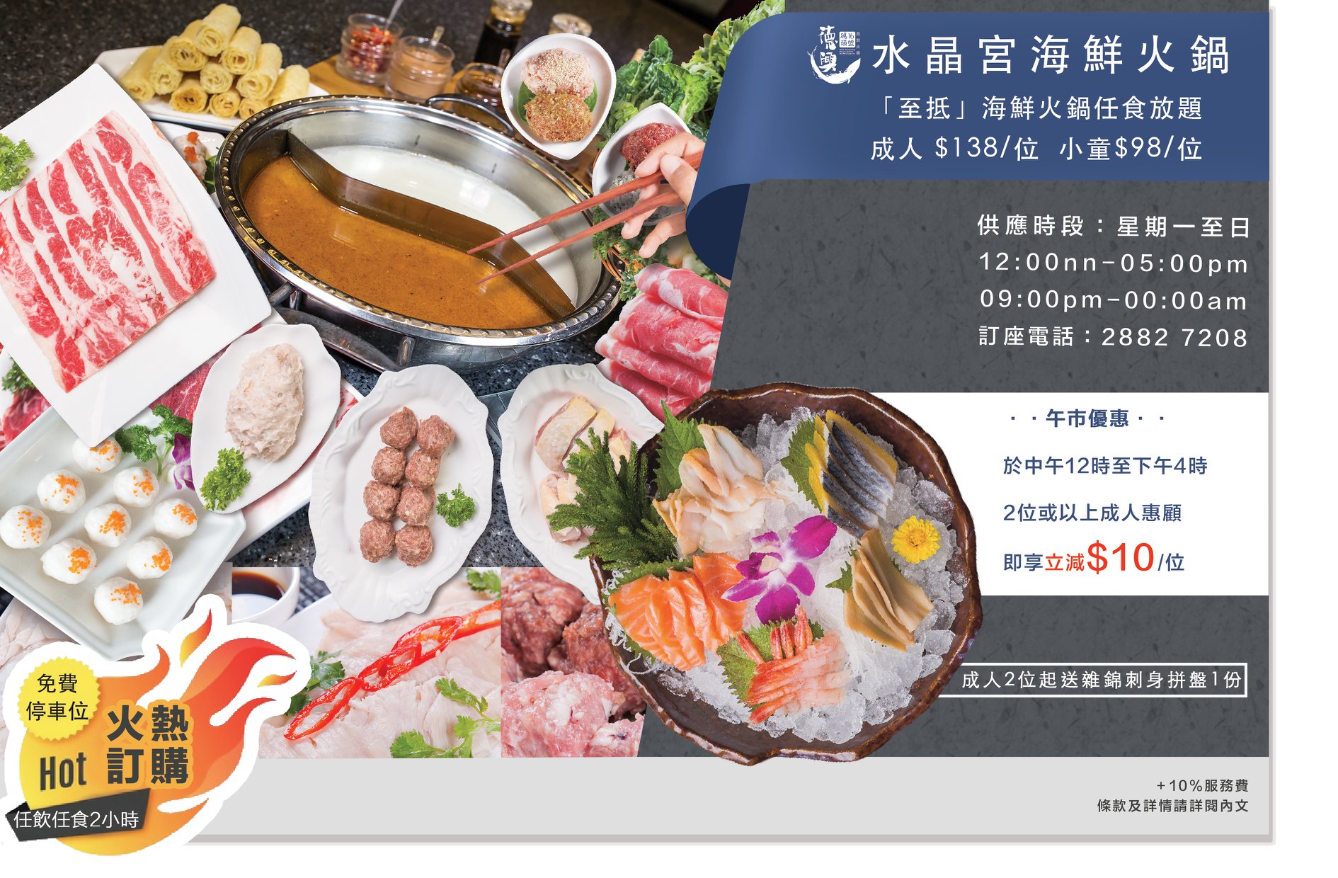 水晶宮至抵海鮮火鍋放題$138,送刺身盤,仲有立減!