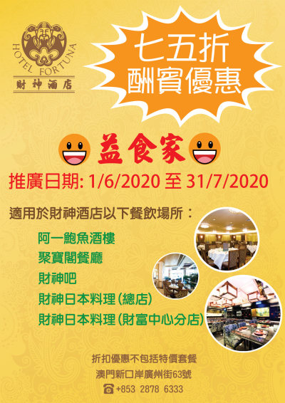 地址 : 澳門新口岸廣州街63號財神酒店六樓