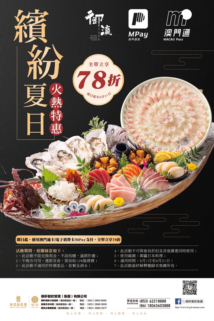 御瀛繽紛夏日,火熱折扣,8月1日御瀛日本料理誠意鉅獻復業4重豪禮