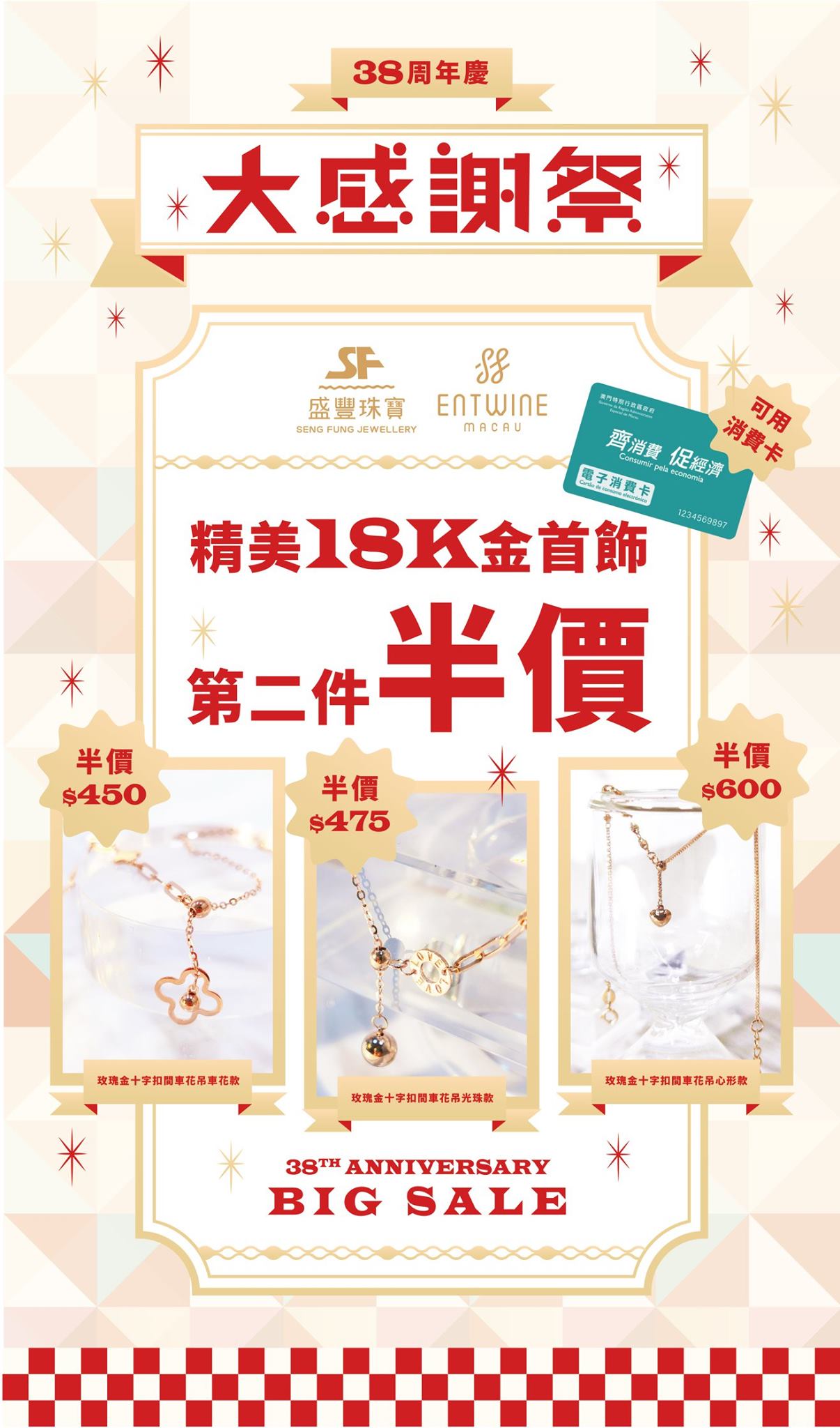 優惠三:精美18K金首飾第二件半價!