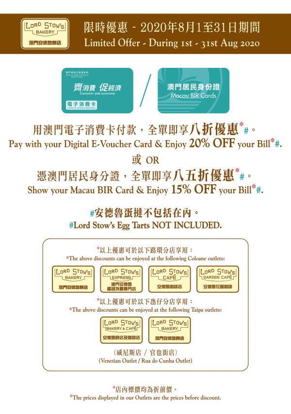 使用澳門電子消費卡付款,即享8折優惠