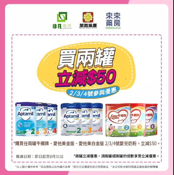 各大品牌奶粉購買2罐或以上,即享立減或贈送禮品優惠